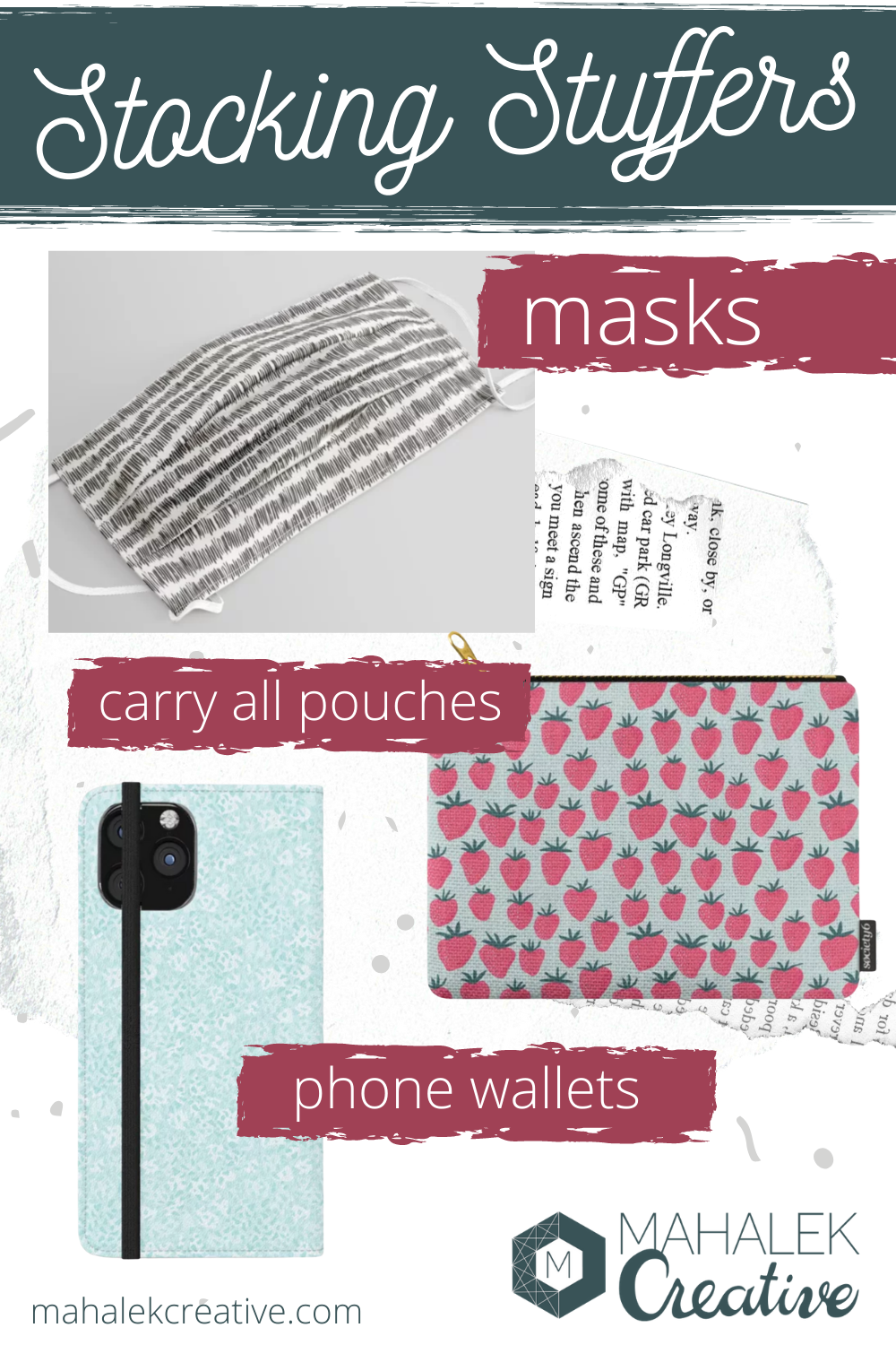 Did you know that Mahalek Creative patterns are available on a wide assortment of Society6 items? These quality-made items make wonderful holiday gifts. These include: